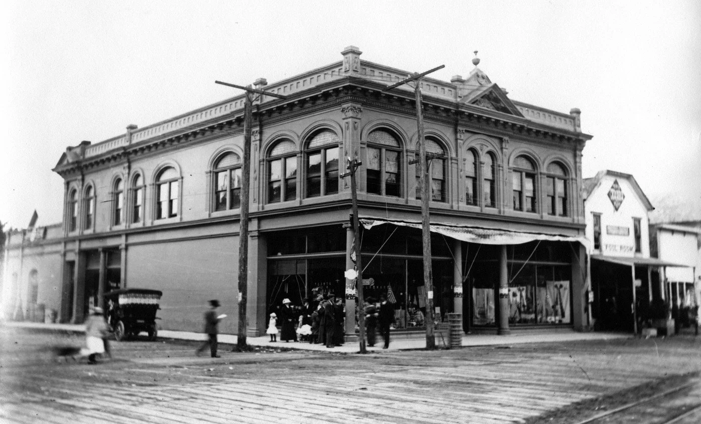 Originally constructed as the Aberdeen Packing Company Store by owner B.A. Seaborg, the Doupé Building was completed in 1896 just two years after the Markham Home had been built on the same site and quickly relocated. The store served the area for two decades until it was purchased in 1919 by brothers Joe and Harry Doupé. Known as The Doupé Brothers Hardware since that time, the general mercantile offered a wide selection of hardware, dry goods, and ready-to-wear items.